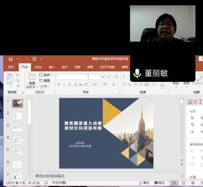 10月26日下午,社科處處長董麗敏教授為我院開展了以“聚焦國家重大戰(zhàn)略 做好社科項目申報”為主題的報告。本次講座由李燕副院長主持,全體教師參與并認(rèn)真學(xué)習(xí)了本次講座。