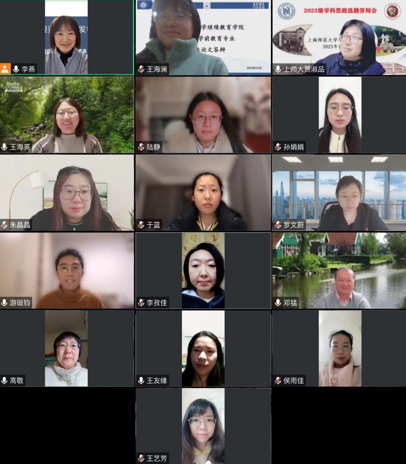 本次會議采用騰訊線上會議形式,華東師范大學(xué)鄧猛教授、南京師范大學(xué)王海英教授、上海師范大學(xué)賈淑品教授作為評議專家出席會議,會議由李燕副院長主持,學(xué)院共有十一位教師參加。