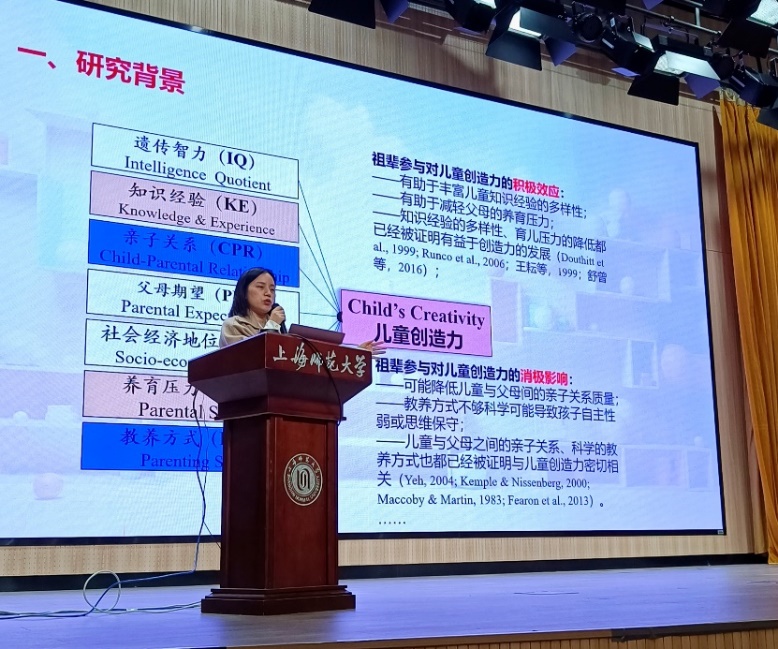 講座伊始,陸燁分享了她關(guān)于家庭教養(yǎng)的研究成果,闡述了當(dāng)今教育界對(duì)隔代教養(yǎng)和兒童創(chuàng)造力的關(guān)注與重視。隨后,她向在場師生介紹了與創(chuàng)造力相關(guān)的經(jīng)典理論,強(qiáng)調(diào)了家庭環(huán)境在兒童的創(chuàng)造力發(fā)展中的重要作用,并對(duì)中國育兒模式已變遷為祖輩參與模式的現(xiàn)狀做了一定闡述。
