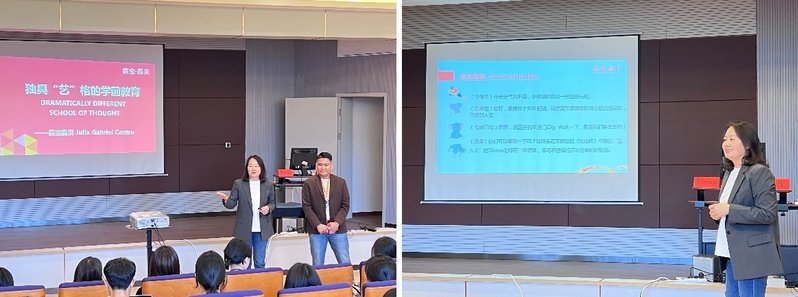 為進(jìn)一步拓展就業(yè)崗位、暢通就業(yè)渠道,做好學(xué)前師范生就業(yè)宣講工作,4月24日下午,學(xué)院邀請上海嘉寶幼兒園于奉賢校區(qū)科技樓B座201舉行了題為“獨具‘藝’格的學(xué)前教育”的講座。嘉寶幼兒園倩倩老師、外教Silvino老師主講,輔導(dǎo)員何坤鵬主持,實習(xí)輔導(dǎo)員和2021級、2022級本科生共計100余人參加。