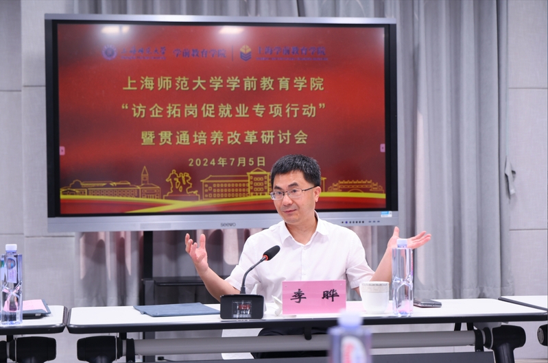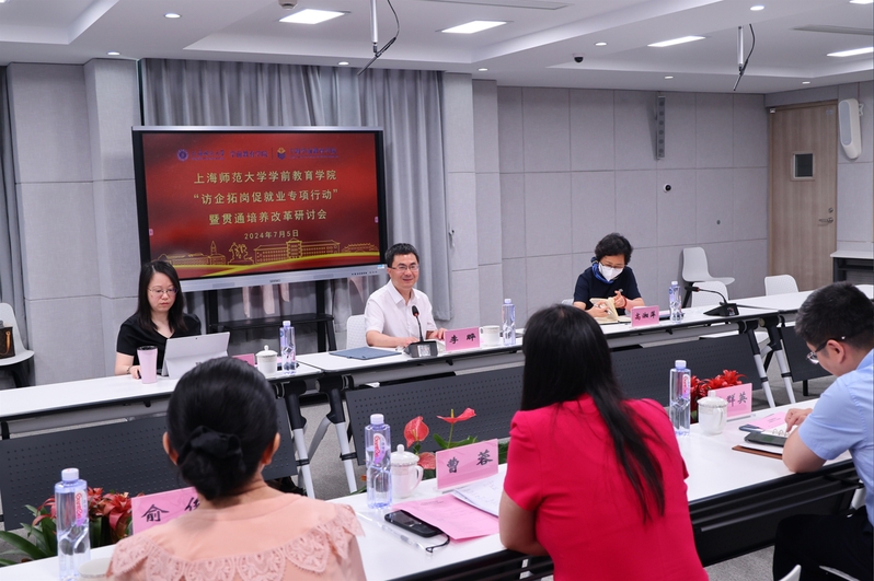 為加強學院師范生見實習實踐基地建設,提升實踐基地質(zhì)量,探討構(gòu)建職前培養(yǎng)和職后培訓的一體化培養(yǎng)模式,提升學前學子的就業(yè)競爭力,7月5日上午,kaiyun體育登錄網(wǎng)頁入口“訪企拓崗促就業(yè)專項行動”暨中本貫通培養(yǎng)改革研討會在上海師范大學附屬楊浦現(xiàn)代職業(yè)學校(以下簡稱上師楊職)本溪校區(qū)召開。上海師范大學副校長李曄、楊浦區(qū)教育局副局長吳群英、kaiyun體育登錄網(wǎng)頁入口院長高湘萍、副院長何慧華、上師楊職校長曹蓉、副校長俞俊以及楊浦區(qū)教育局、楊浦區(qū)教育學院、kaiyun體育登錄網(wǎng)頁入口、上師楊職相關(guān)人員共同參會。會議由曹蓉主持。