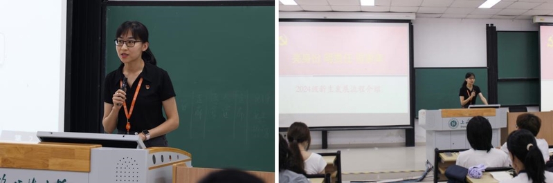 隨后,組織員夏漪向新生們詳細介紹了申請入黨的5個階段和25個步驟在內(nèi)的完整入黨流程,并對新生入黨申請書的撰寫進行了系統(tǒng)培訓(xùn)。她針對入黨申請書的格式及內(nèi)容向新生提出了嚴格、明確的要求,幫助新生們端正入黨動機,熟知入黨程序。