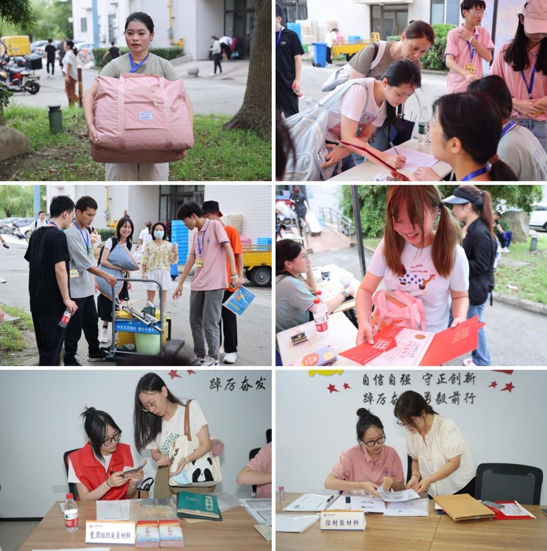 報到現(xiàn)場,本研新生輔導(dǎo)員們耐心引導(dǎo)答疑,學院黨員、入黨積極分子、班導(dǎo)生認真核驗,新生臨時召集人、志愿者們盡職盡責。從迎新物資搬運到報到場地布置、從報到答疑咨詢到新生行李搬運,學院上下齊心協(xié)力,通過細微環(huán)節(jié)傳遞“學前溫度”。