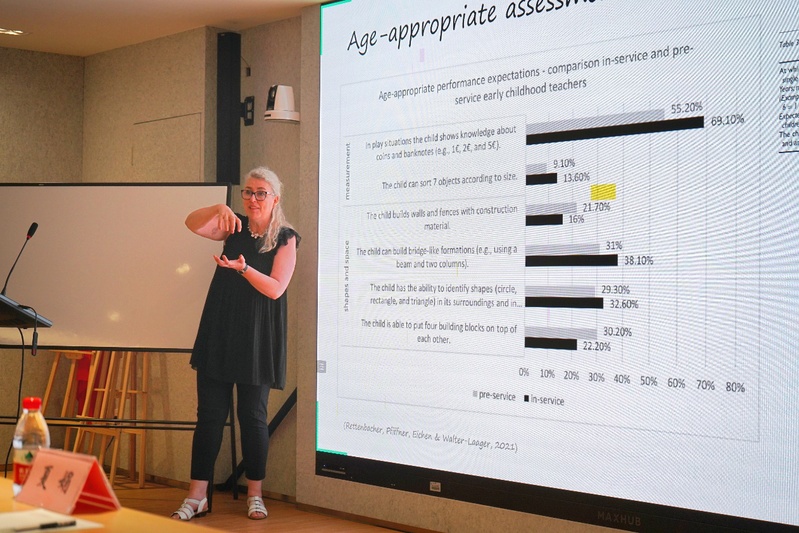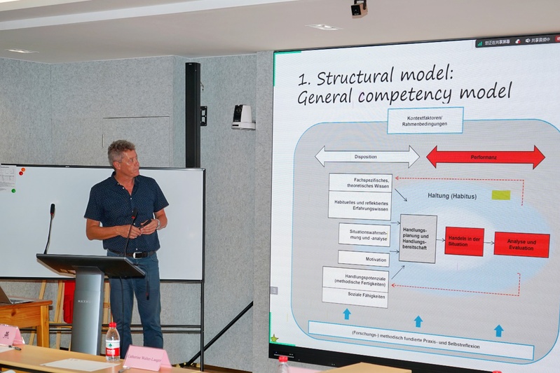 Pfiffner教授深入剖析了師幼互動(dòng)質(zhì)量的理論基礎(chǔ),強(qiáng)調(diào)教師應(yīng)通過(guò)理論學(xué)習(xí)、專(zhuān)業(yè)知識(shí)積累與自我反思,靈活調(diào)整教學(xué)策略,以適應(yīng)不同教育情境和對(duì)象。他與Walter-Laager教授共同展示了三種教育者能力模型,為教育工作者的專(zhuān)業(yè)成長(zhǎng)提供了清晰路徑及結(jié)構(gòu)化發(fā)展框架,進(jìn)而指導(dǎo)教師職業(yè)發(fā)展、教育評(píng)價(jià)及政策制定。二位教授希望通過(guò)此次交流會(huì),深化對(duì)教育實(shí)踐議題的探討,切實(shí)提高教育者的教學(xué)效能。