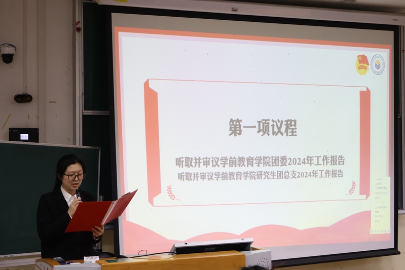 學(xué)院團(tuán)委書(shū)記邵悅作共青團(tuán)kaiyun體育登錄網(wǎng)頁(yè)入口委員會(huì)工作報(bào)告。他表示,學(xué)院團(tuán)委始終緊密圍繞學(xué)院黨委中心工作,以教育家精神引領(lǐng)未來(lái)教師隊(duì)伍建設(shè),聚焦理論學(xué)習(xí)穩(wěn)鏈、校園文化補(bǔ)鏈、科研實(shí)踐強(qiáng)鏈、新媒宣傳延鏈,在幫助學(xué)前青年筑牢思想基石、夯實(shí)專業(yè)素養(yǎng)的基礎(chǔ)上,著重提升科研素養(yǎng)、豐富職業(yè)體驗(yàn)、精進(jìn)育人能力。他提到,學(xué)院團(tuán)委將進(jìn)一步配合學(xué)院黨委做好高質(zhì)量人才培養(yǎng)、提升學(xué)生就業(yè)能力的工作,團(tuán)結(jié)帶領(lǐng)學(xué)前學(xué)子努力成為具有教育家精神的新時(shí)代高素質(zhì)專業(yè)化學(xué)前教育人才。