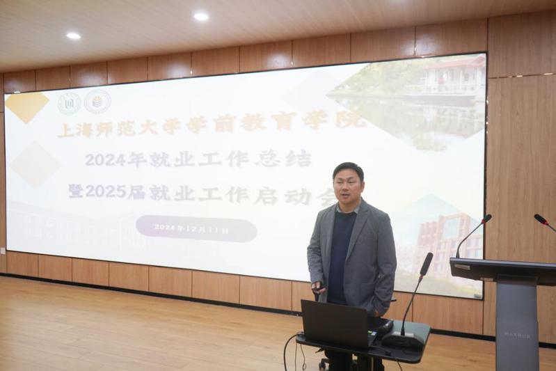 周澤龍對(duì) 2024 屆畢業(yè)生就業(yè)情況及去向分布進(jìn)行了詳細(xì)分析,并對(duì)2025年就業(yè)工作舉措進(jìn)行了介紹。在學(xué)前教育招聘編制大幅縮減的現(xiàn)實(shí)背景下,由學(xué)院黨政領(lǐng)導(dǎo)牽頭,專業(yè)教師和學(xué)工團(tuán)隊(duì)定向幫扶,動(dòng)態(tài)跟蹤,全院上下齊心協(xié)力,最終實(shí)現(xiàn)畢業(yè)去向落實(shí)率超過(guò)學(xué)校平均水平,簽約率位列全校第二,基層就業(yè)率位列全校第三的較好成績(jī)。學(xué)院連續(xù)三年蟬聯(lián)“高質(zhì)量就業(yè)獎(jiǎng)”和“基層就業(yè)獎(jiǎng)”,嚴(yán)雅琴獲2024年就業(yè)工作“先進(jìn)個(gè)人”,方鈞君、岑璐獲學(xué)?!熬蜆I(yè)推薦獎(jiǎng)”。