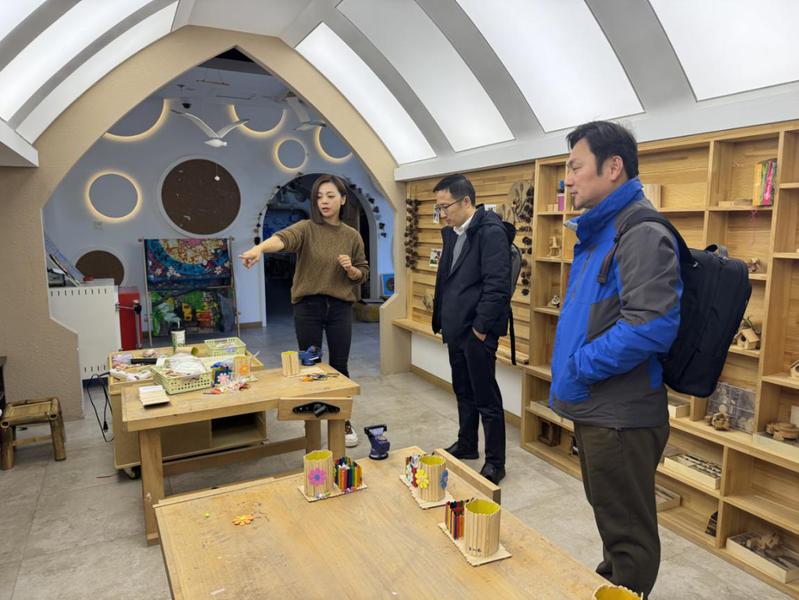 陳科靜帶領學院師生參觀了園所環(huán)境創(chuàng)設、恒溫游泳池、種植試驗區(qū)和科創(chuàng)室、建構室、美工室等多個特色活動室,同時對園所的生源結構、分班情況和辦學特色進行了詳細介紹。