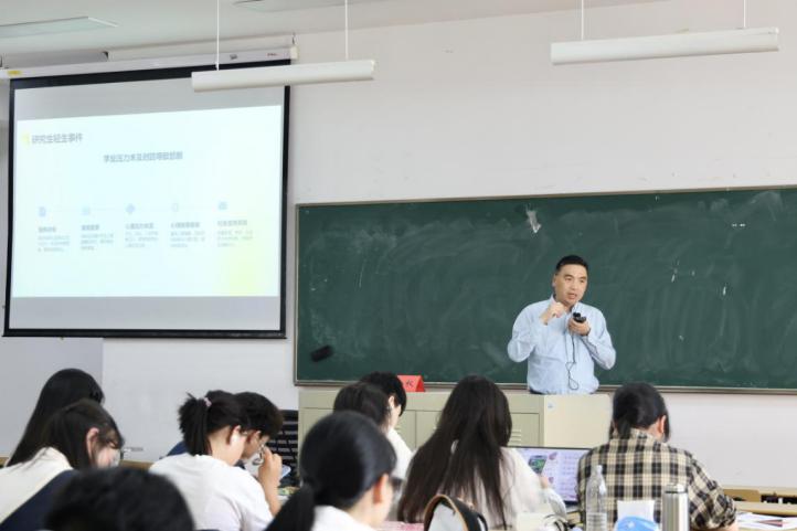 陸金權(quán)圍繞消防安全、交通安全、防詐安全、心理安全這四方面開展教育,通過校園各類安全事故的數(shù)據(jù)分享,詳細(xì)介紹宿舍陽臺、走廊等重點(diǎn)火災(zāi)隱患區(qū)域,為同學(xué)們敲響了消防安全警鐘。隨后他針對交通事故多發(fā)的校園路段,提醒同學(xué)們在人流高峰時段提高警惕,嚴(yán)格遵守校園交通規(guī)則,共同維護(hù)有序的交通環(huán)境。在防詐安全和心理安全板塊,他就詐騙預(yù)防和壓力疏導(dǎo)對大家進(jìn)行了叮囑。