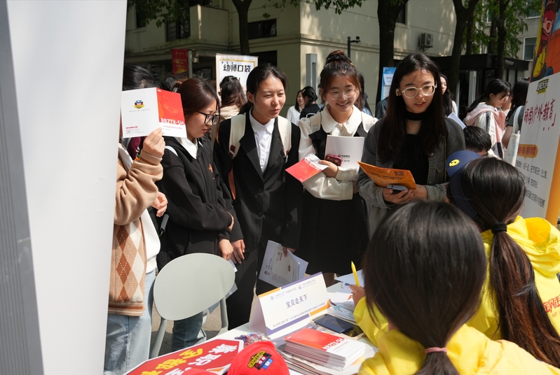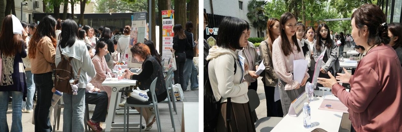 為搭建優(yōu)質(zhì)就業(yè)平臺,深化校企合作,拓寬學(xué)生就業(yè)渠道,4月23日,學(xué)院在徐匯校區(qū)東部學(xué)生生活園區(qū)主干道舉辦2025屆畢業(yè)生春季招聘會(huì)暨2026屆實(shí)習(xí)雙選會(huì)。本次活動(dòng)吸引了上海市二十余家優(yōu)質(zhì)用人單位參會(huì),涵蓋公辦幼兒園、民辦幼兒園及教育培訓(xùn)企業(yè),為畢業(yè)生和實(shí)習(xí)生提供了豐富的崗位選擇。
