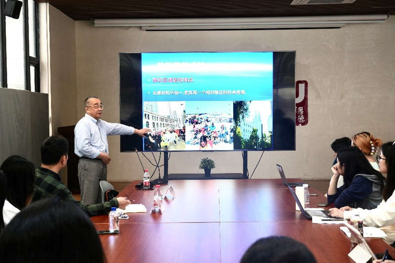 活動伊始,朱新光從“美國是一個什么樣的國家”這一問題切入,引導(dǎo)同學(xué)們初步了解美國。隨后,他圍繞美國的發(fā)展路徑、美國的特點(diǎn)以及中美關(guān)系的演變等方面進(jìn)行了深入講解,并呈現(xiàn)了生動的案例。他談到,美國從殖民地起步,依靠戰(zhàn)爭擴(kuò)張和技術(shù)引進(jìn)迅速崛起;其外交策略也經(jīng)歷了從孤立主義到門戶開放的演變,并通過經(jīng)濟(jì)、軍事等各種手段實(shí)現(xiàn)其霸權(quán)目的。他還談到了中美關(guān)系的演變歷史。