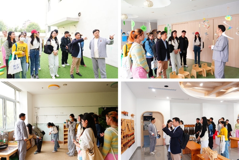 活動伊始,園所負責人帶領學院師生參觀了園所環(huán)境布局,詳細介紹了各類功能教室及特色活動空間,包括馬場、古箏室、木工室等,此外,學院師生還現(xiàn)場觀摩了幼兒園的馬術課,進一步直觀感受園所多元化的教育理念與育人特色。