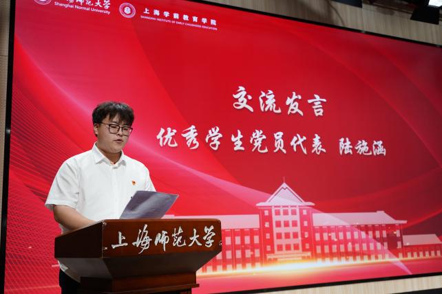 大學(xué)生黨員“設(shè)崗定責(zé)”黨員示范崗代表陸施涵以“守初心、夯學(xué)識、作表率”為主題分享了自己在向黨組織不斷靠攏的過程中所實現(xiàn)的自我突破與成長蛻變,呼吁全體學(xué)生黨員增強(qiáng)專業(yè)本領(lǐng),躬身教學(xué)實踐,努力成為具有教育家精神的高素質(zhì)、創(chuàng)新型、專業(yè)化未來學(xué)前教師。