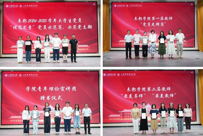 會上表彰了2024-2025學(xué)年kaiyun體育登錄網(wǎng)頁入口教工“黨員先鋒崗”“最美導(dǎo)師”“最美教師”以及2024-2025學(xué)年上海師范大學(xué)學(xué)生黨支部“設(shè)崗定責(zé)”示范黨支部和學(xué)生黨員“示范崗”,為學(xué)院第三屆青年理論宣講團(tuán)代表贈送“四有好老師”系列叢書。