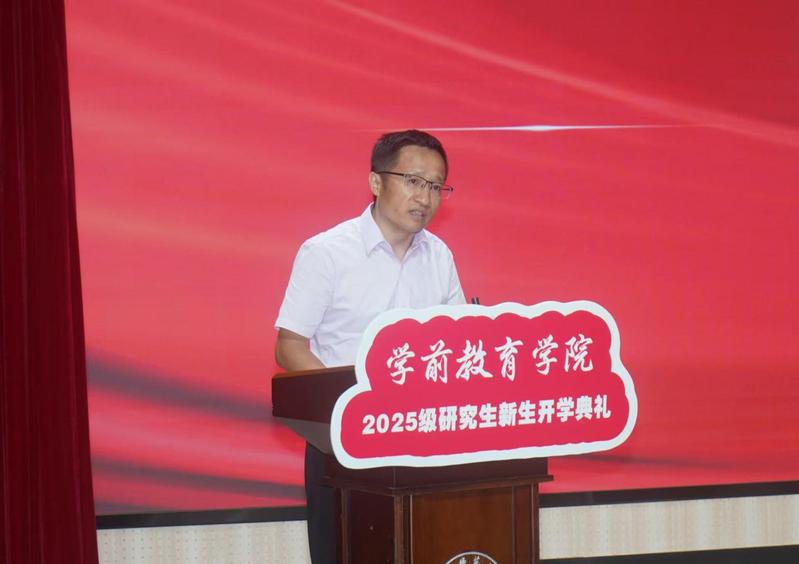 楊成龍對本研新生表示歡迎,并結(jié)合學(xué)院成立發(fā)展的脈絡(luò)和近些年取得的重要成果勉勵新生,他談到新時代新形勢新機遇下,學(xué)前學(xué)子應(yīng)成長為具有家國情懷、練就過硬本領(lǐng)、發(fā)揚奮斗精神的追夢人,牢記“慈幼、善育、傳承、創(chuàng)新”的院訓(xùn),在成為未來教師的道路上砥礪奮進,勇毅前行。