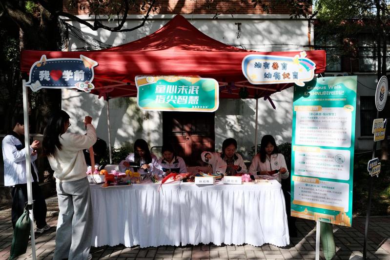 五顏六色的扭扭棒在校友手中翻飛,轉(zhuǎn)眼間化作小巧的花朵、可愛的動(dòng)物造型,每一件手工制品都承載著童年的純粹與創(chuàng)意;拼圖拼?;窄h(huán)節(jié)里,校友們?nèi)宄扇?,凝神聚力拼接碎片,?dāng)熟悉的?;胀暾尸F(xiàn),往昔在校園里的求學(xué)時(shí)光也隨之浮現(xiàn);扎氣球?qū)^(qū)前笑語盈盈,校友們將氣球扎成形態(tài)各異的作品,并紛紛合影留念。