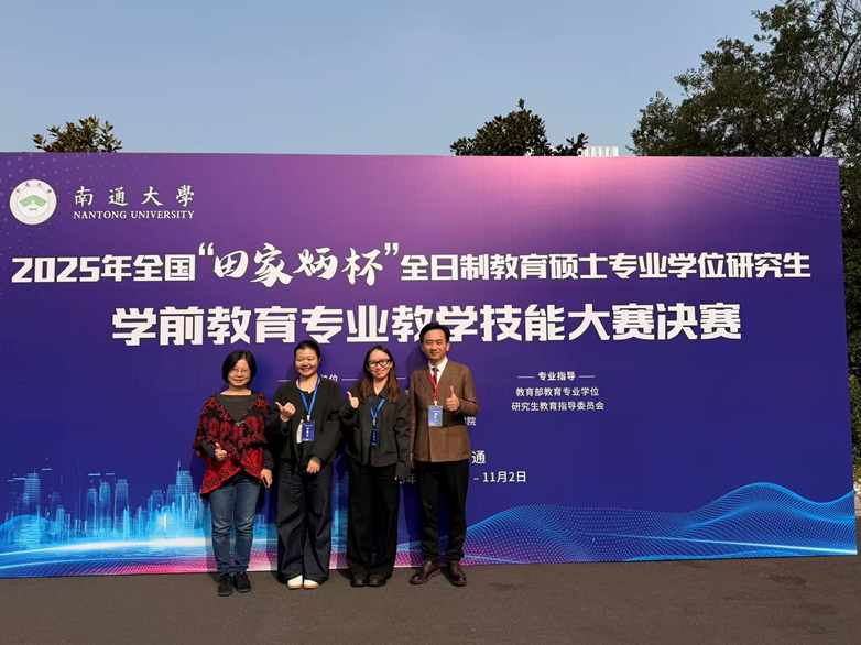 11月2日,2025年全國“田家炳杯”全日制教育碩士專業(yè)學位研究生學前教育專業(yè)教學技能大賽決賽在南通大學圓滿落幕。我院羅文蔚副教授指導的2024級研究生徐宋佳獲得三等獎。