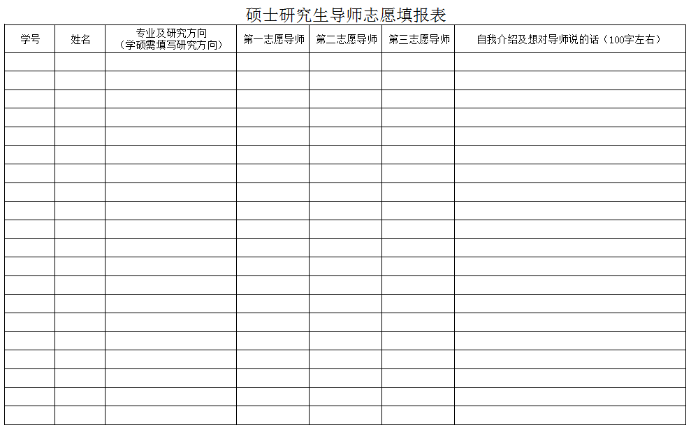碩士研究生可以關(guān)注學(xué)院網(wǎng)站上的“導(dǎo)師個(gè)人簡(jiǎn)介”,并在規(guī)定時(shí)間內(nèi)在線完成 “碩士研究生導(dǎo)師志愿填報(bào)表” (見附件1),每位碩士研究生可以按順序填報(bào)三個(gè)志愿。學(xué)科點(diǎn)則按學(xué)生所報(bào)志愿順序,供導(dǎo)師選擇。