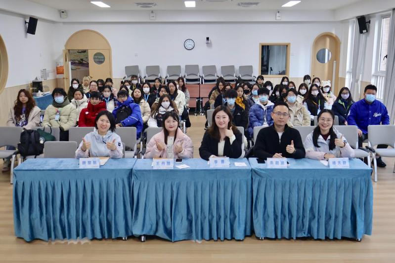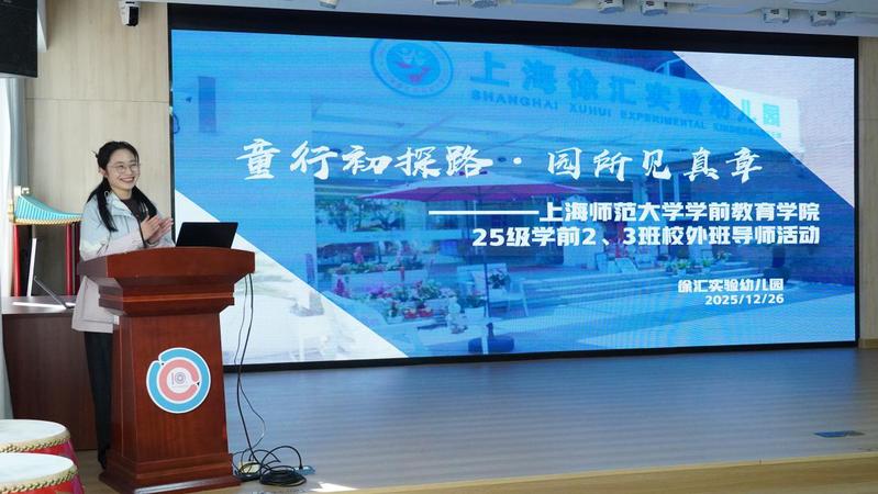 為幫助學院新生直觀感受幼兒園教育教學實景,夯實專業(yè)認知與職業(yè)素養(yǎng),在校外班導師褚天舒和朱超波的策劃和指導下,12月26日,學院25級學生赴徐匯實驗幼兒園開展走進幼兒園暨校外班導師交流活動,本次活動由校外班導師、徐匯實驗幼兒園科研組長褚天舒主持,學院25級輔導員王丹娜及25級學前教育2班、3班約60名同學參與。
