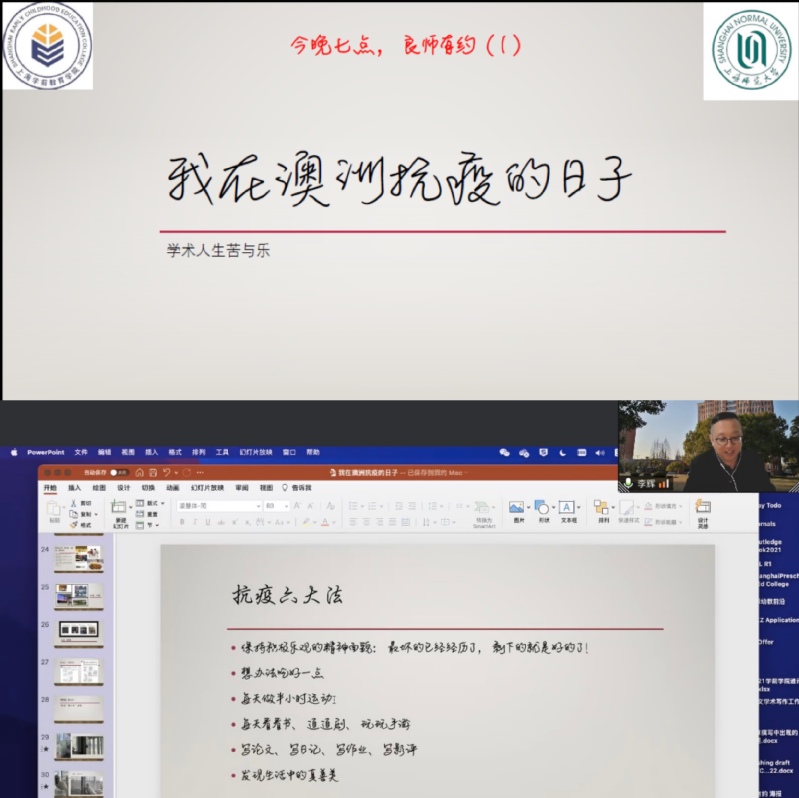 首場良師有約“云”端相伴活動邀請到的是kaiyun體育登錄網(wǎng)頁入口講座教授、博士生導(dǎo)師、香港大學(xué)教育學(xué)院終身教授李輝。李輝教授以“學(xué)術(shù)人生苦與樂:我在澳洲抗疫的日子” 為主題,為同學(xué)們講述了他在澳洲任教期間經(jīng)歷的抗疫故事。長期的居家隔離生活讓他更加明白家人的意義和自由的可貴,逐漸形成了高度自律的習(xí)慣。隔離期間,他堅持思考和寫作,基于生活實踐發(fā)展探索性創(chuàng)新思維,在完成防疫任務(wù)的同時,也迎來自己人生的學(xué)術(shù)高產(chǎn)期。面對此次疫情中同學(xué)們普遍存在的心理焦慮問題,李輝教授用親身經(jīng)歷總結(jié)了“抗議六大法”,即保持樂觀的精神面貌、享受美食帶來的愉悅心情、堅持因地制宜的運動、培養(yǎng)廣泛的興趣愛好、多動筆頭進行寫作和善于發(fā)現(xiàn)生活中的真善美,以此鼓勵居家居寢的學(xué)生積極調(diào)試和保持樂觀積極的心理狀態(tài),緩解疫情帶來的焦慮和壓力,提升應(yīng)對困難挫折的能力?;犹釂柇h(huán)節(jié)里,同學(xué)們就研究方向選擇、學(xué)術(shù)人生思考等問題與李教授展開熱烈討論。現(xiàn)場師生互動交流頻繁。