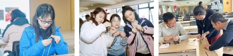 本次活動(dòng)邀請(qǐng)繩結(jié)編織專家沈老師進(jìn)行現(xiàn)場授課指導(dǎo)。沈老師從繩結(jié)的歷史淵源娓娓道來,通過視頻演示與手把手教學(xué),細(xì)致講解并現(xiàn)場示范蛇結(jié)等的編織技巧,帶領(lǐng)老師們沉浸式領(lǐng)略中華傳統(tǒng)手工藝的獨(dú)特魅力與文化底蘊(yùn)。