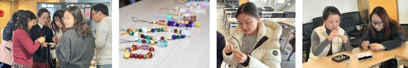 DIY創(chuàng)作環(huán)節(jié),參加活動(dòng)的老師們興致盎然,挑選彩線與珠飾等材料,將所學(xué)編織技巧融入創(chuàng)意構(gòu)思,在一步步嘗試、摸索中開啟專屬的手機(jī)鏈創(chuàng)作之旅。編織過程中,老師們相互交流心得、切磋技藝,分享手工創(chuàng)作的樂趣與喜悅,體驗(yàn)中華傳統(tǒng)文化之美?;顒?dòng)現(xiàn)場洋溢著歡樂祥和、熱烈溫馨的濃厚氛圍。經(jīng)過一個(gè)多小時(shí)的精心制作,一條條風(fēng)格各異、獨(dú)具創(chuàng)意的手機(jī)鏈相繼完成。