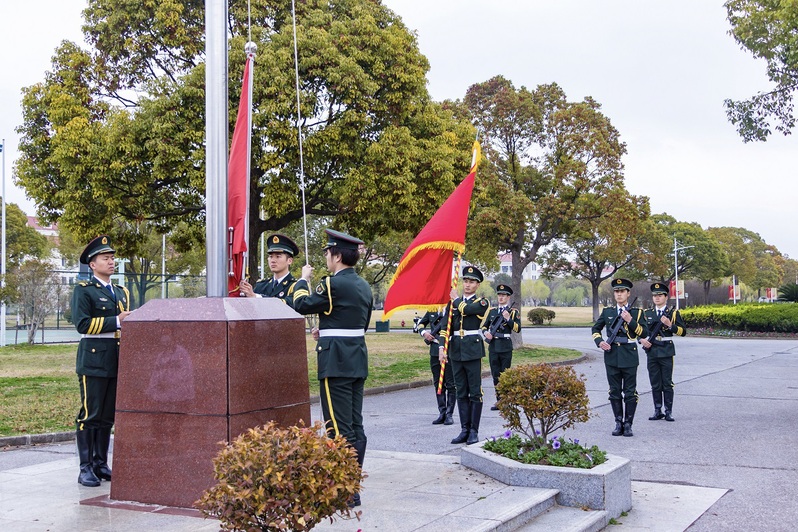 英姿颯爽的護(hù)旗手們昂首挺胸,邁著鏗鏘有力的步伐護(hù)送國旗入場。在莊嚴(yán)的國歌聲中,國旗在全體師生的注視下冉冉升起,迎風(fēng)飄揚(yáng)。在場所有師生行注目禮,端正挺拔的站姿滿懷對(duì)祖國無限的熱愛與崇高的敬意。