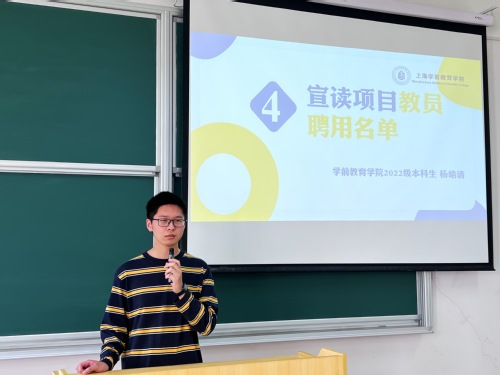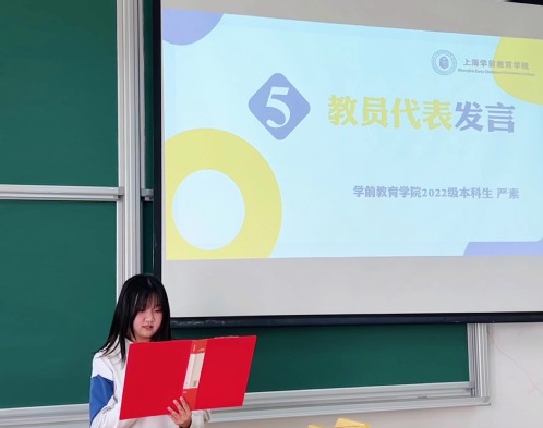 項(xiàng)目組成員2022級本科生楊皓清宣讀項(xiàng)目教員聘用名單。教員代表2022級本科生嚴(yán)素結(jié)合教案撰寫、課堂教學(xué)、課后總結(jié)分享了自己第一次作為教員的心得體會。她認(rèn)為,通過課程的教學(xué)可以充分激發(fā)師范生師德理想、師德觀念和師德價(jià)值等在內(nèi)的師德意識和師德情感,進(jìn)一步喚醒師德自覺,涵養(yǎng)教育情懷。