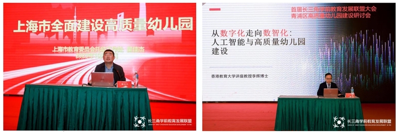 開幕式后,上海市教委托幼處副處長瞿佳杰和香港教育大學講座教授李輝分別圍繞“上海全面推進高質(zhì)量幼兒園建設(shè)的政策解讀”與“人工智能與高質(zhì)量幼兒園建設(shè)”做了主旨報告。
