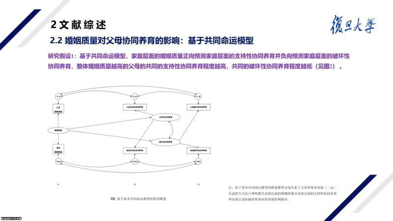 講座第二部分陳教授以碩士論文《婚姻質(zhì)量對父母協(xié)同養(yǎng)育的影響:基于共同命運模型的跨層中介分析》為例進行詳解。該論文已在《心理學(xué)報》上發(fā)表,其創(chuàng)新之處在于將共同命運模型進一步擴展成基于共同命運模型的跨層中介模型,將家庭層面與個體層面靈活融合于共同命運模型中,即通過父親和母親個體層面的教養(yǎng)能力感進一步探尋了家庭整體婚姻質(zhì)量對協(xié)同教養(yǎng)的作用機制,為維護與改善家庭養(yǎng)育環(huán)境提供啟示。