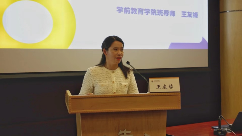 kaiyun體育登錄網(wǎng)頁(yè)入口黨委委員、2021級(jí)學(xué)前教育3、4班班導(dǎo)師王友緣作為班導(dǎo)師代表分享了工作經(jīng)驗(yàn)。她指出班導(dǎo)師不僅是學(xué)生專業(yè)上的指導(dǎo)者,更是教學(xué)相長(zhǎng)的良師益友,希望同學(xué)們能夠在班導(dǎo)師的引領(lǐng)下奮發(fā)進(jìn)取、行穩(wěn)致遠(yuǎn)。2021級(jí)學(xué)前教育8班的李逸楓作為老生代表分享了自己與班導(dǎo)師相處的點(diǎn)滴故事,對(duì)疫情期間班導(dǎo)師給予細(xì)致入微的關(guān)懷表示衷心的感謝,鼓勵(lì)同學(xué)們做一個(gè)講道德、有品行的學(xué)前人。