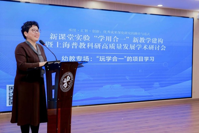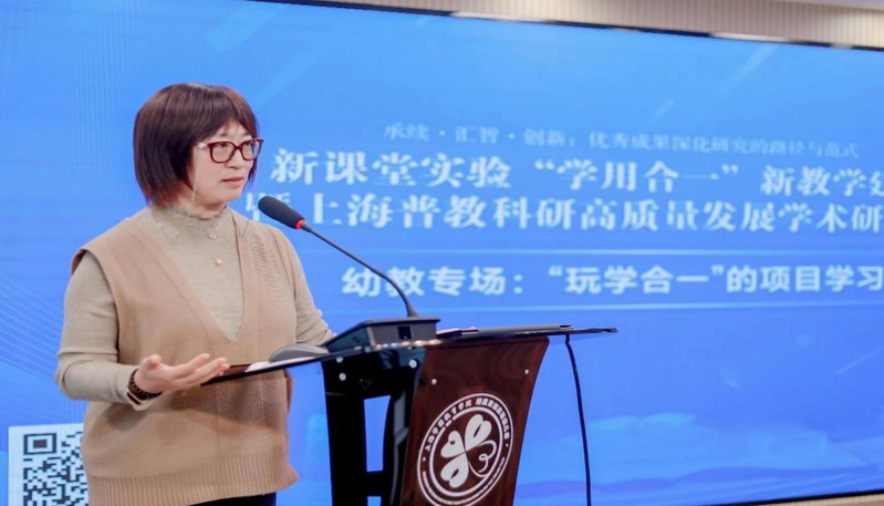 隨后,青浦區(qū)教師進(jìn)修學(xué)院教育科學(xué)研究中心副主任黃開宇作了《“玩學(xué)合一”項(xiàng)目學(xué)習(xí)中的兒童學(xué)習(xí)遷移》的主題報(bào)告,介紹了青浦區(qū)新教學(xué)建構(gòu)學(xué)前領(lǐng)域的理論研究和實(shí)踐探索。青浦區(qū)實(shí)驗(yàn)幼兒園副園長周毅妮、kaiyun體育登錄網(wǎng)頁入口附屬青浦實(shí)驗(yàn)幼兒園副園長嚴(yán)曉冬就“玩學(xué)合一”的理念下開展的教學(xué)實(shí)踐進(jìn)行了主題匯報(bào),介紹了《實(shí)幼嘉年華》《跨年光影秀》等主題活動,反映出幼兒園圍繞科技元素與多元文化開展的教育實(shí)踐歷程。