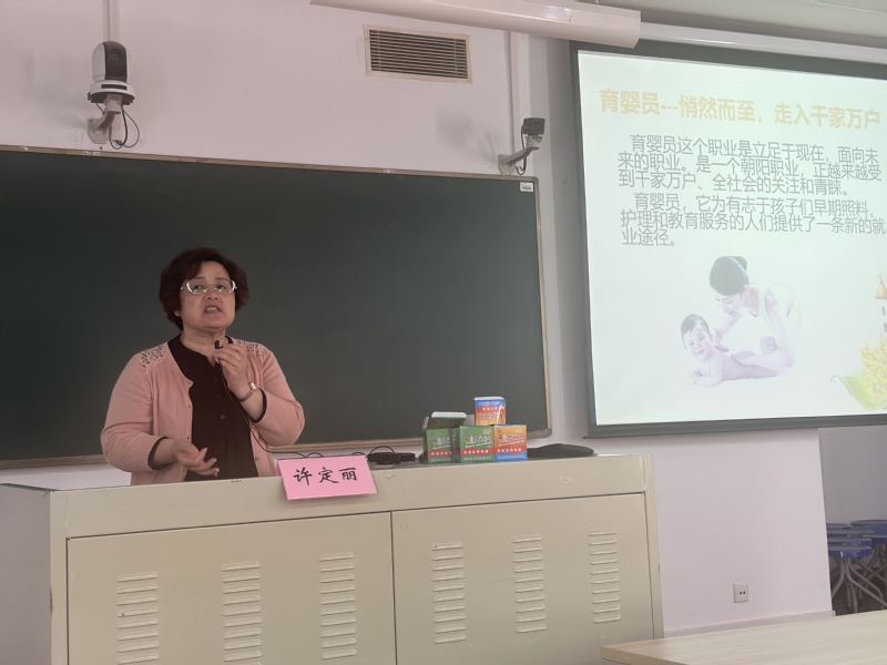 許定麗從就業(yè)方向、職業(yè)優(yōu)勢(shì)、培訓(xùn)課程等方面向同學(xué)們介紹了報(bào)考育嬰師的相關(guān)情況,并指出育嬰師資格證書(shū)在上海市托幼一體化教育背景下的重要性,是越來(lái)越多幼兒園教師正在努力的方向。