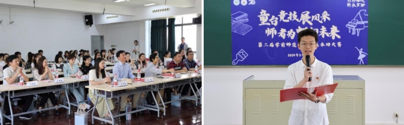 學(xué)院特色社團(tuán)小蜜蜂劇團(tuán)帶來開場(chǎng)合唱表演《奉獻(xiàn)》,充分彰顯了學(xué)前青年的青春風(fēng)采,也展現(xiàn)了學(xué)前學(xué)子樂教愛生、甘于奉獻(xiàn)的仁愛之心;決賽選手代表編排的《薪火承師道 善育鑄未來》詩朗誦,表達(dá)了學(xué)前學(xué)子涵養(yǎng)師德情懷、傳承師道永恒,立志“躬耕教壇,強(qiáng)國有我”的決心。