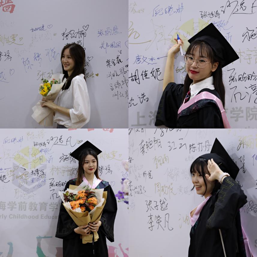 畢業(yè)生歡聚一堂,與同窗一道在簽名墻上署下自己的姓名,鐫刻下在師大的青春烙印。會場滾動播放畢業(yè)季專屬視頻《放心去飛》、畢業(yè)生黨員抗疫紀實視頻《青春同行,戰(zhàn)疫有我》、學前教育專業(yè)畢業(yè)生風采展視頻《研思童想,育幼有方》,一幀幀畫面還原美好的校園生活,見證成長的軌跡、青春的擔當、未來的暢想。